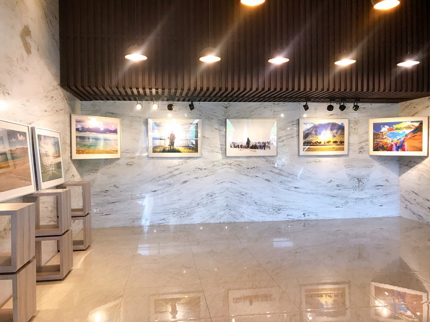 其實吃到這邊,我們都有8分飽了,吃完主餐~上甜點的這段時間,剛好能好好看一下餐廳旁邊展示的畫作。大理石的牆面、搭配投射燈,這樣的空間滿文青的,吃飯之餘還可以陶冶心靈。