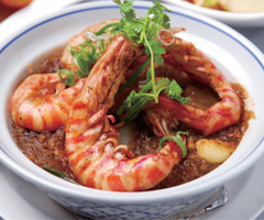 晶湯匙每家店的裝潢都很有特色,復興店的裝潢採明亮的黑色沉穩style很適合要來生日聚餐或情侶慶祝大日子的時候,特別有氣氛!裡面的裝潢格局很簡約,每個座位間都有足夠寬敞的空間可以行走來到這裡當然不能不吃一下月亮蝦餅囉~好吃!這倒也是必點,冬粉蝦煲!