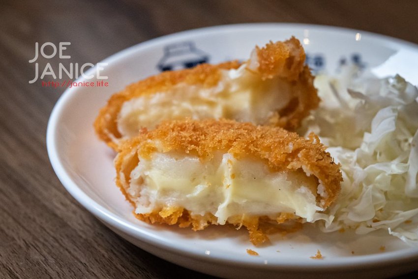 外層麵衣炸的香香酥酥,裡頭的馬鈴薯泥使用的是日本北海道進口的馬鈴薯,口感細緻綿密,咬下一口,麵衣的酥脆加上軟綿的馬鈴薯泥、還有綿滑的起司,大人小孩都會喜歡的!