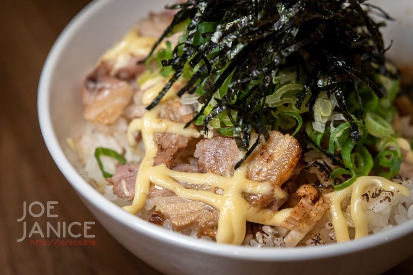 使用日式壽司米煮出來的白米飯粒粒分明的,佐上先香軟柔嫩的手作叉燒,淋上獨門自家丼汁、甜甜的美乃滋、撒上蔥花與海苔絲,拌在一起大口放進嘴裡,很好吃欸!!很適合幫自己家小朋友點一碗來吃喔。