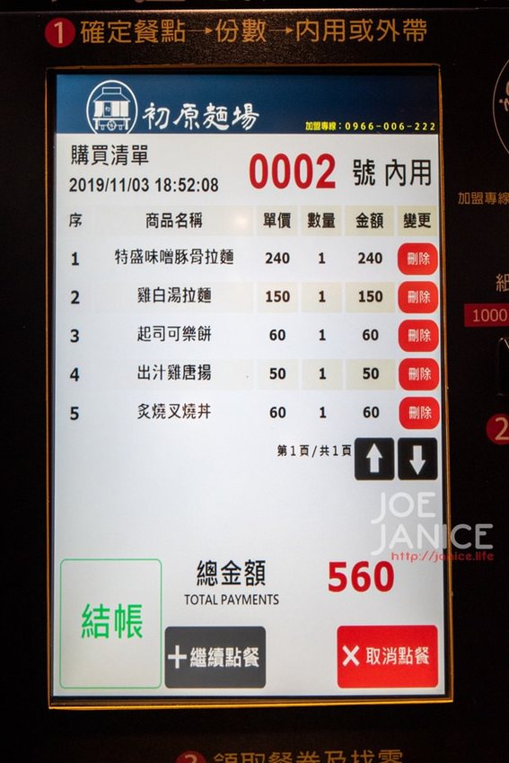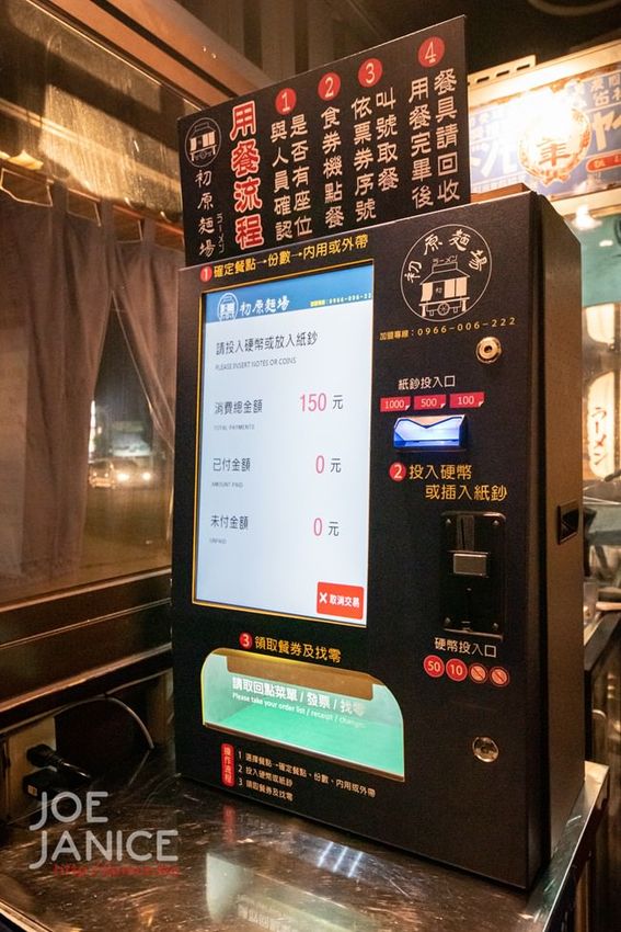 .點完餐點後,直接從機器投入鈔票或零錢,接著就可以先回座位等待,餐點完成、老闆就會叫號,再去找老闆領餐點就可以了。