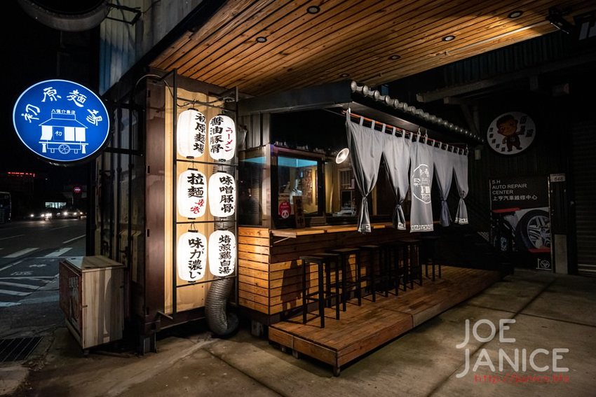 初原麵場的創始店在三峽,很低調的在八德介壽路二段上開了新分店,而且位置超低調,在一家汽車保修廠旁邊的貨櫃屋裡;其實我們已經多次經過初原麵場,滿滿的好奇、卻一直沒找到時間來探探,這天阿啾主動提起要去拍這家拉麵,一定是因為剛從京都回來,特別想念日本吧