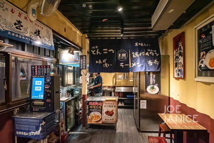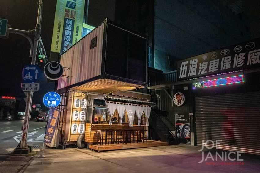 小巧的貨櫃屋,外觀使用了大量的木板做裝飾,除了室內座位,門口旁也設置了有如日本屋台般一整排的戶外座位,現在天氣很涼爽,還蠻多客人喜歡坐戶外,邊吹拂著晚風、邊大口吃著熱騰騰的拉麵,很享受的。