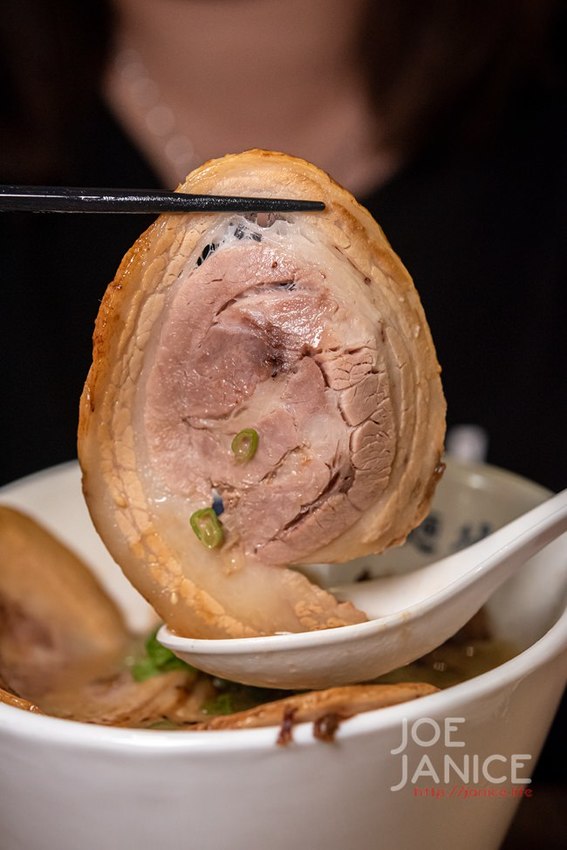 接著來說說這銷魂的叉燒吧!肥瘦比例剛剛好的手作叉燒,使用的是以自然養殖的活菌豬肉,所以不會有一般豬隻的臭騷味,卻又仍帶有豬肉的肉香。大口咬下,帶著焦香的瘦肉加上肥肉部分迷人的油脂味兒,柔嫩的口感在嘴裡交融在一起。