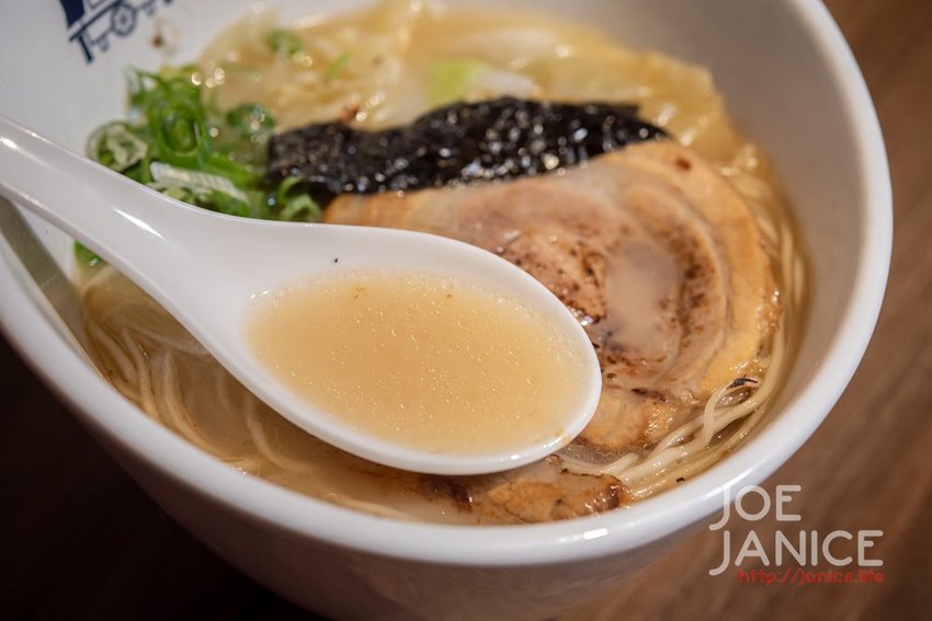 先來說說湯頭的部份,乳白色的湯頭,質地香醇渾厚,感覺裡頭有好多的膠原蛋白,喝起來滿滿的鮮甜,順口好喝且沒有負擔感,搭配清爽的蔥花,很適合小孩或是女性朋友品嘗;麵條部份是細直麵,老闆在烹煮前會貼心詢問我們喜歡的口感是偏硬或偏軟,潔妮我自己是比較喜歡偏硬、較有口感的麵條,細麵吸附了滿滿黏稠的湯汁,每一口味道的極好。