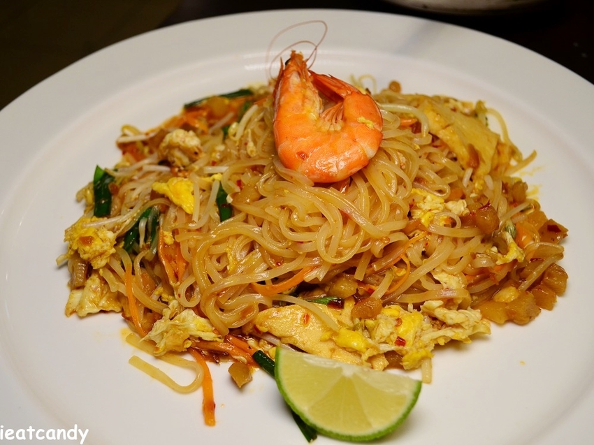 看起來不起眼,但口感最讓我喜歡的就是這道泰式炒河粉,分量足夠分給兩個人,比印象中的河粉再細一點,每一條麵都有被降之均勻包覆住,每一口都能感受到酸、辣、甜的滋味,擠上檸檬,多了一層清香,滋味更加豐富。