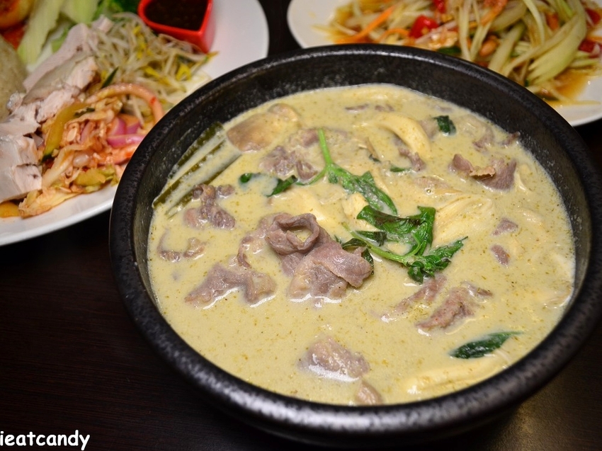 綠咖哩是我一定會到泰式餐廳點的餐點,泰之飲的綠咖哩牛肉醬汁比較稀一點,但濃郁度仍有,奶味較為濃郁並帶點些許辣度,湯汁是好入喉的,配飯也很不錯,除了牛肉片以外、還有秀珍菇,沒想到菇類對綠咖哩也很對味。