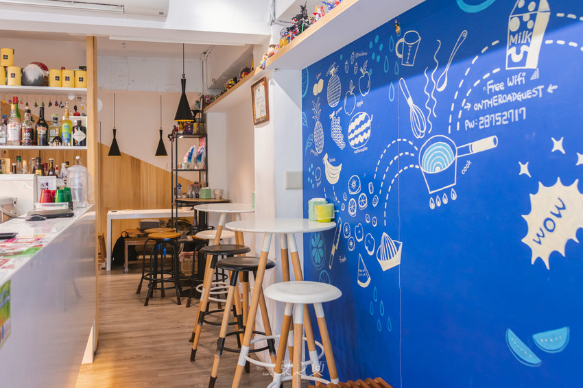 天母忠誠路上林蔭扶疏,天氣好的時候特別適合走走路、散散步,On the Road 就在這樣一片綠意中製造了些藍色,可愛的藍色門面特別令人感到好奇;而 On the Road 則是做一些真材實料的冰淇淋和義式雪酪,希望自己用心、用好食材製造出來的冰淇淋,能夠陪著喜愛他們的人們,一起走一段舒服的陽光步道。