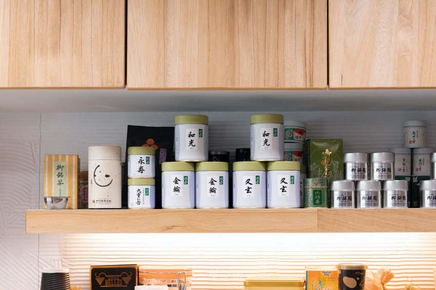 不過其實最吸引我的,是吧台後方層架上滿滿的、各式各樣不同品牌的高級抹茶粉哪!老闆說那些都是要拿來做抹茶冰淇淋的,他們會在粉絲專頁上揪團,製作加倍濃郁的抹茶冰淇淋,給特別喜好抹茶的抹茶控們訂購。