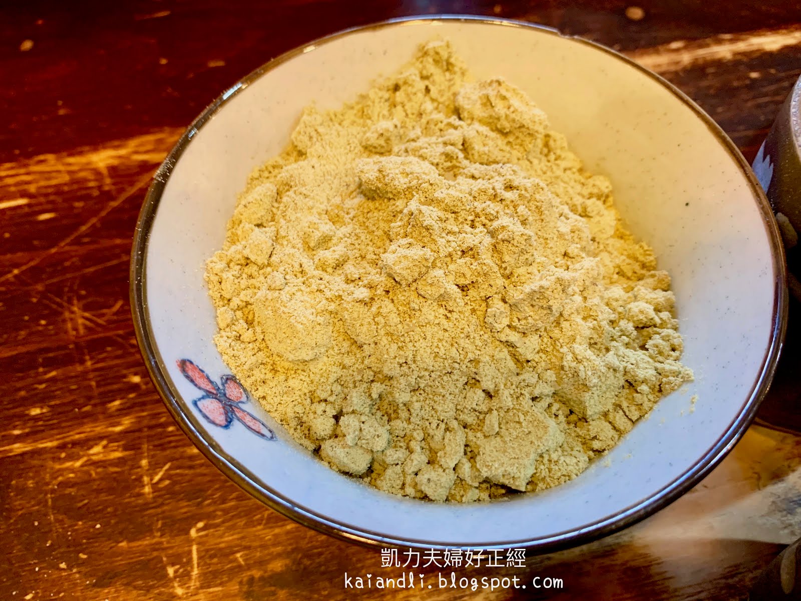 此時倒入熱茶,用湯匙攪拌均勻,便成了一杯帶有獨特香氣,非常非常好喝的茶。這是第一次品嚐客家擂茶,口味如何我也很難斷定,但對凱伊凡的真實感受而言,客家擂茶真的爆・好・喝!!!!茶香味與芝麻花生融合在一起,帶出不同層次的味蕾。我心裡感覺,這完全跟日本茶道不分軒輊,非常用心的一道傳統料理。