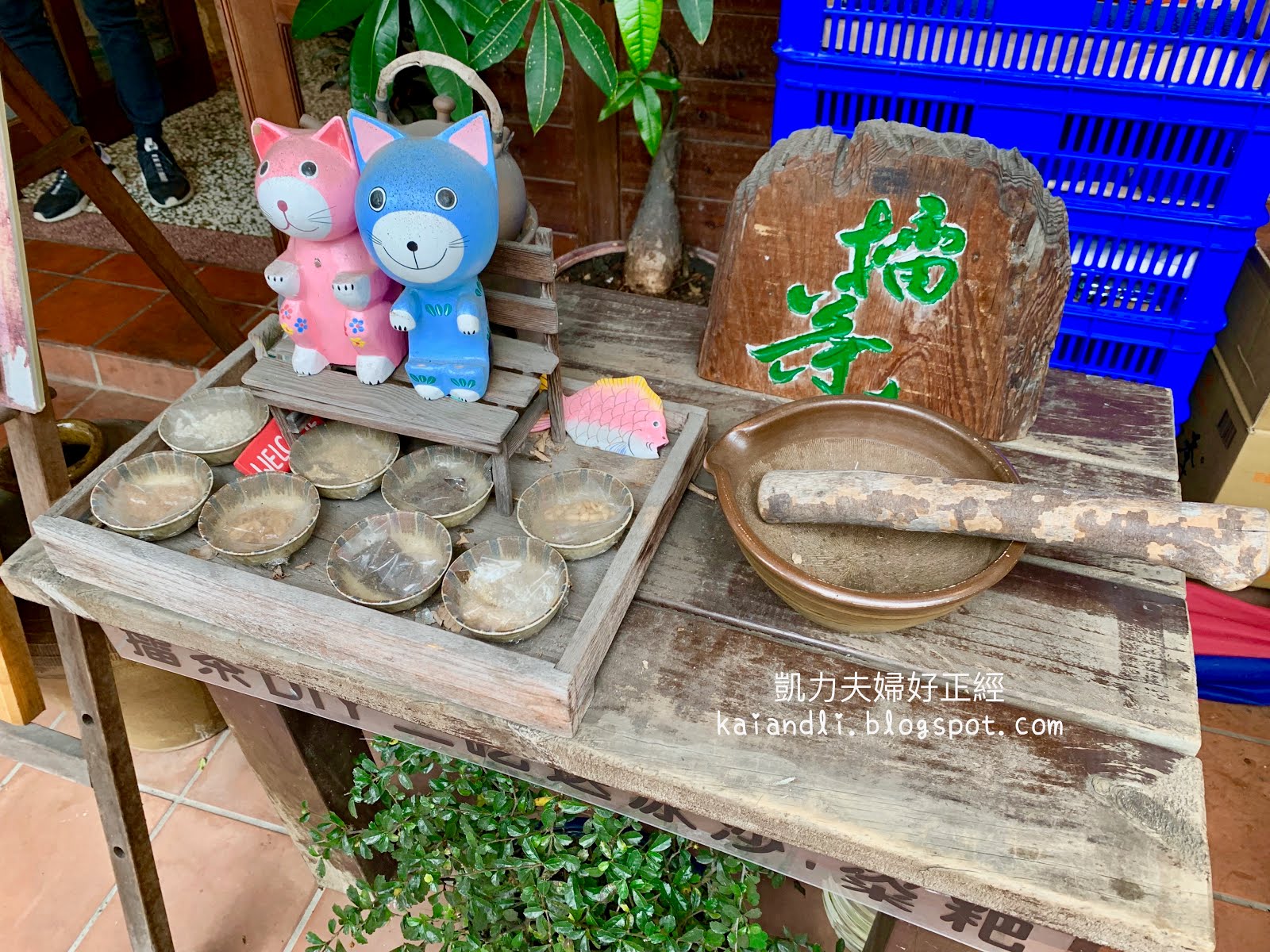 店門前擺設著擂茶的用具