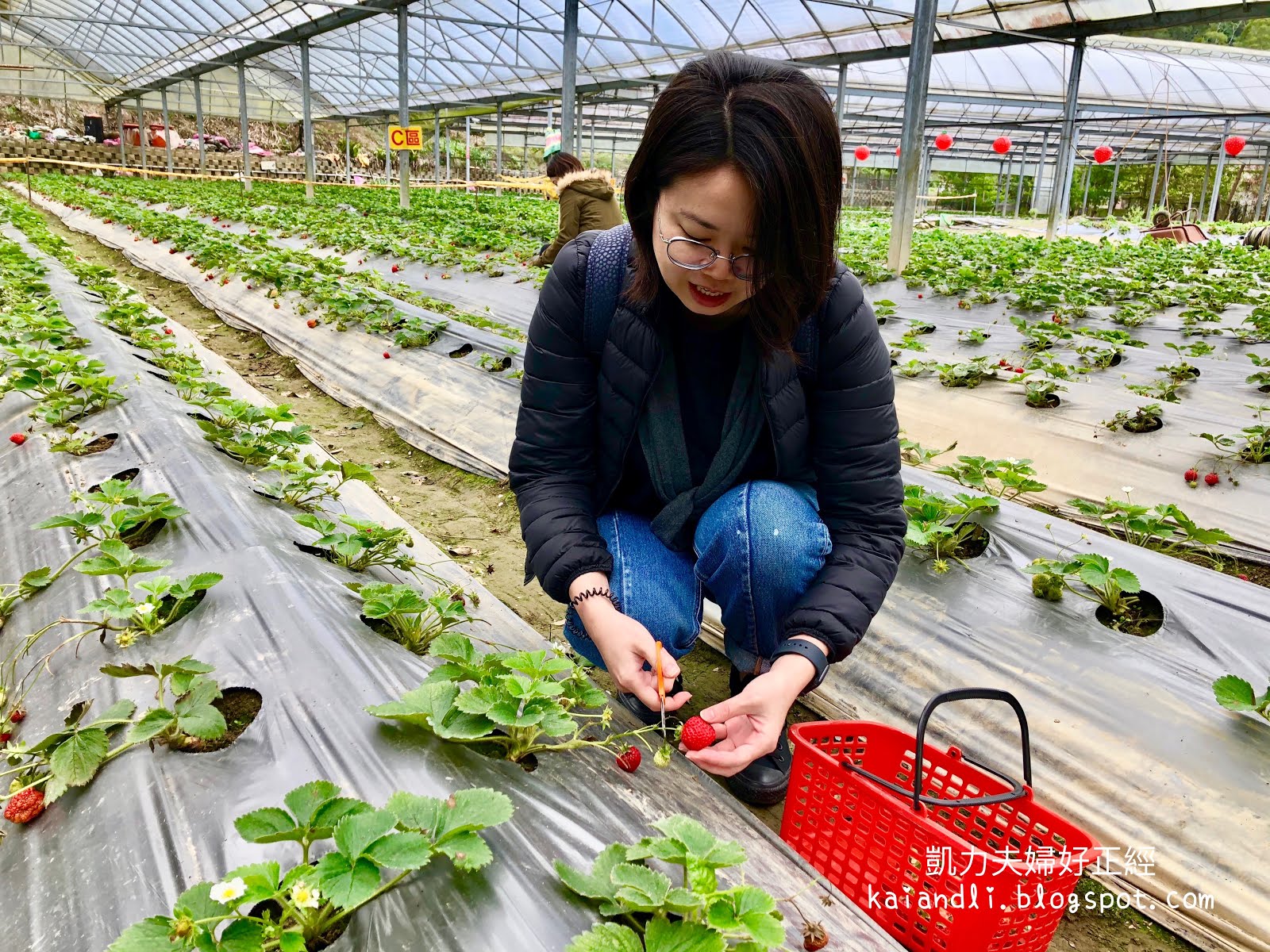 這是凱伊凡全家人第一次造訪苗栗三義鄉勝興車站,在鐵軌旁遊蕩的我們,意外發現有一條小徑通往一處草莓園,以前都以為草莓園都要去到大湖,沒想到三義鄉的勝興車站旁就有。我們進來時,正好有一家人正在品嚐自己剛採收完的草莓呢,沒採過草莓的我們(鄉下俗),決定體驗自己動手摘採又大又香甜的草莓果實的過程。