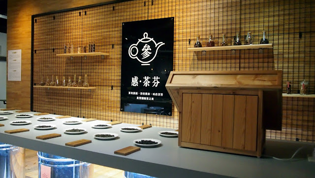 感‧茶芬,此區做得不錯能眼觀加上嗅聞,還能認識各種品項的茶業,只要將茶業盤前的小木頭放在互動的電子書上,即能知道茶葉的知識。
