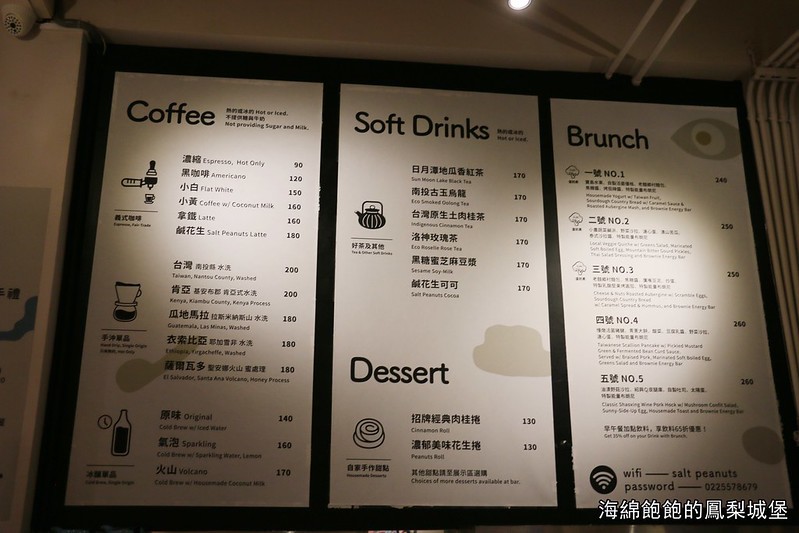 鹹花生咖啡廳的菜單價位