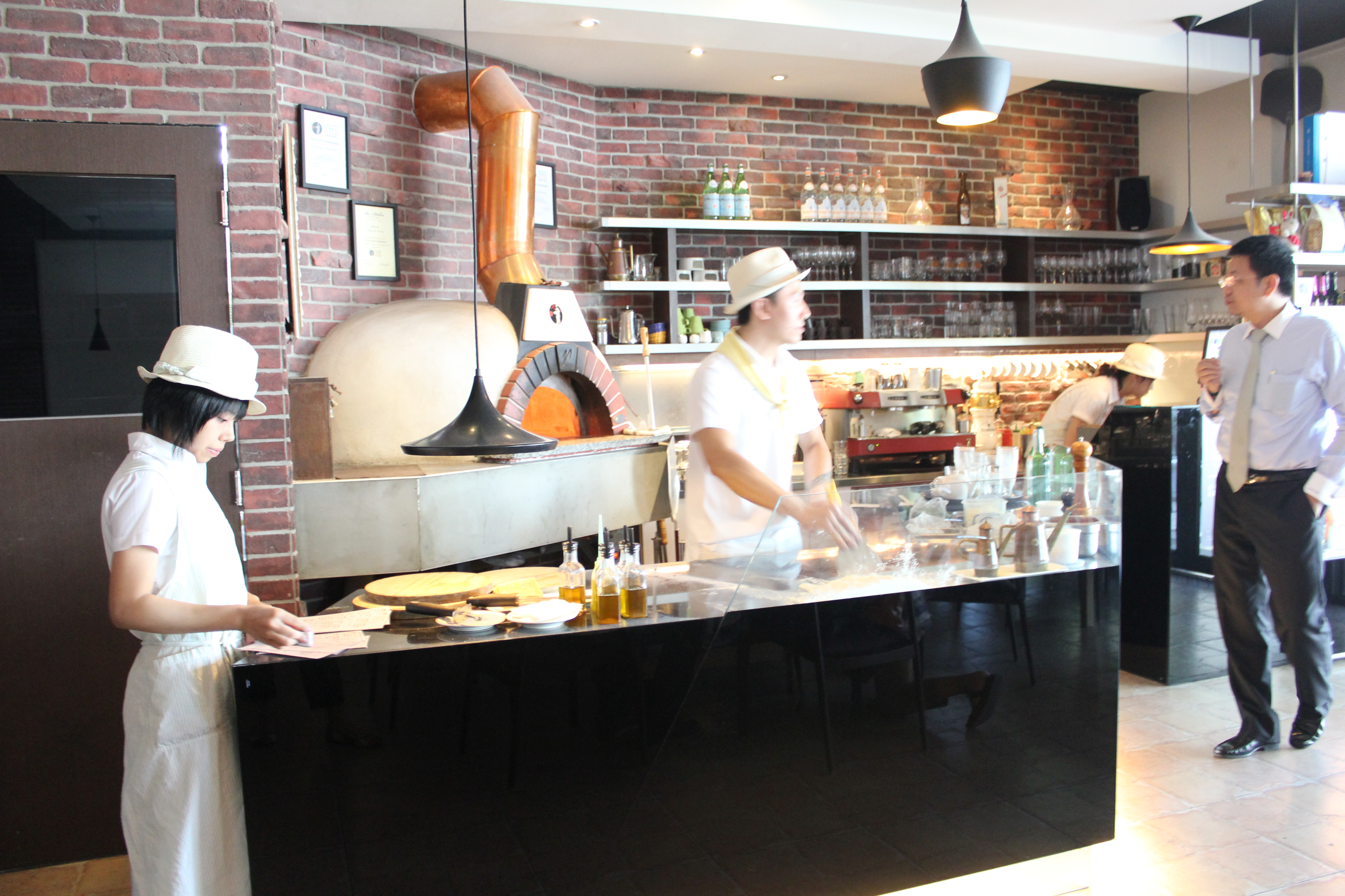 店內風格看起來很舒服,有特色,同時,還可以看到工作人員忙碌的窯烤披薩,標榜的拿坡里認證的店,同時也是全球認證的第402家店,除了老板與三位廚師皆遠赴義大利學習外,連店內的窯烤爐也是義大利原裝,坐船來台灣的,因為有這樣的堅持,披薩自然也有他們獨到的特色。