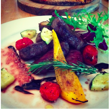 最後出場的是石窯材燒百里香安格司prime牛小排,同樣是透過窯烤的方式來處理,味道非常甘甜,特選牛小排的部位,更可以吃出咬勁口感。這牛排只需要丟入窯中烤個5分鐘就可以快速出爐,快速高溫加熱,可以將水分鎖在食物中,連旁邊一塊窯烤的蔬菜味道也很甜呢!