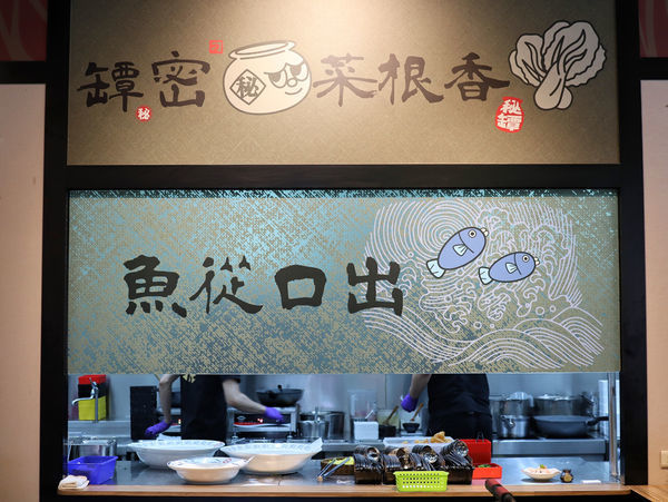 有興趣的在旁遠觀出餐的過程,超大盤放入食材跟高湯後,重頭戲是倒入以乾辣椒跟花椒爆香的滾燙熱油,瞬間的高溫激發無數小泡泡跟撲鼻香氣,最後撒上食用菊花,好美啊!