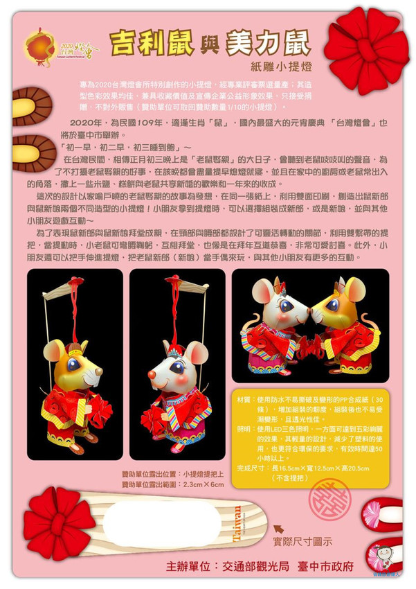 2020剛好是鼠年,所以今年的提燈以老鼠成親拜年為發想,上面有相關文字說明
