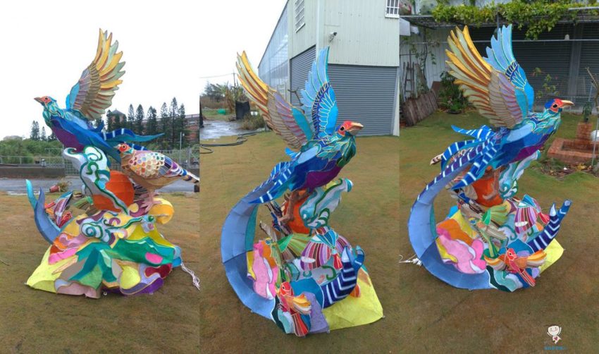 以熱帶水果鳥造型做出來的花燈,不只造型可愛,顏色討喜,難怪吸引一堆大小朋友