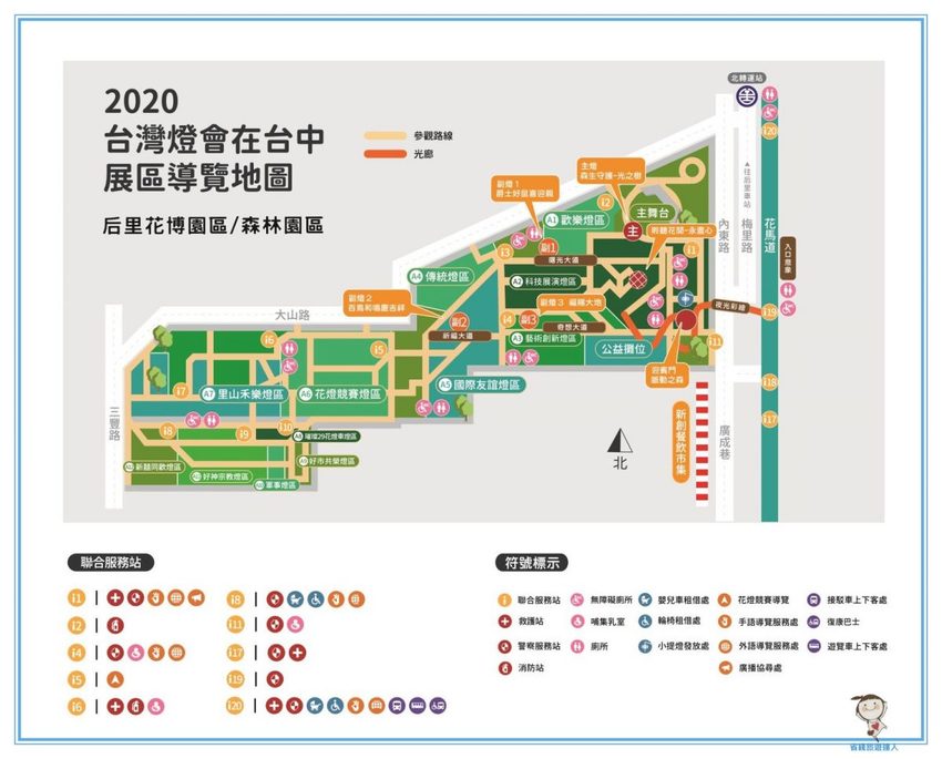 這張就是2020台灣燈會后里花博園區的導覽圖(圖片取自官網)