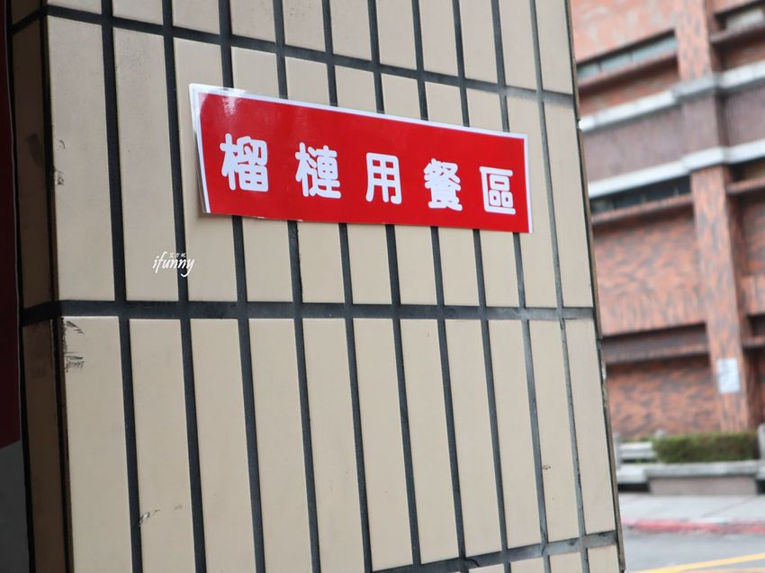 在騎樓本來就有放兩張立食專用的圓桌,一旁柱子上寫著榴槤用餐區,就令人忍不住會心一笑,太可愛了!真的很尊重其他內用客人的權益呢!