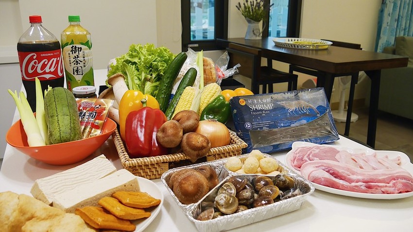 小管家幫我們準備的食材很豐盛耶,各種營養都能均衡攝取到的感覺。小管家還把蛤蜊都已經先吐好沙了超級貼心,那盤豬五花等等烤過一定很好吃