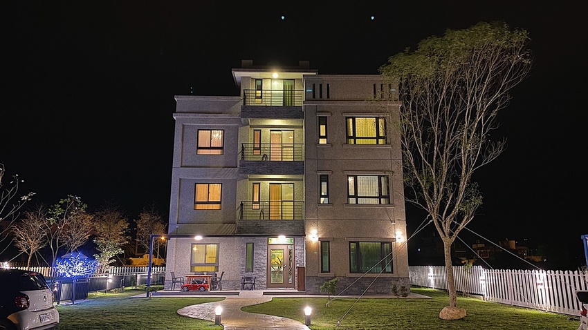 晚上天氣好的時候民宿很漂亮耶,尤其是S型蜿蜒的步道以及景觀燈。後院木製涼亭燈一開也很愜意,可惜雲層稍微厚了點沒看到星星