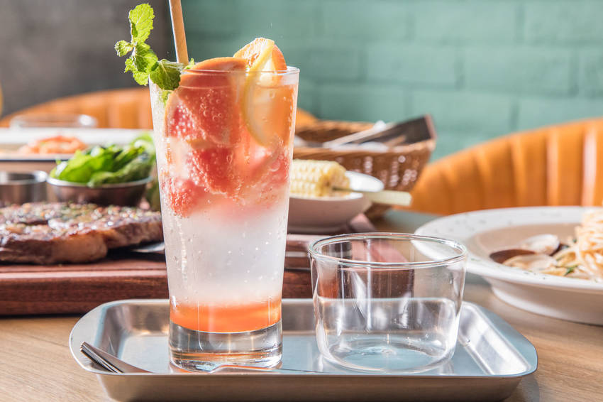 史坦利美式牛排也有多款特色飲料可選擇,像是咬咬今天喝的甜橙葡萄柚氣泡飲都是不錯的好選擇,酒類選想也提供多種精釀啤酒及紅白酒、氣泡酒等,咬咬還蠻推薦這裡的英國富樂精釀,被譽為世界上最好的啤酒廠之一,搭配美式餐點很搭