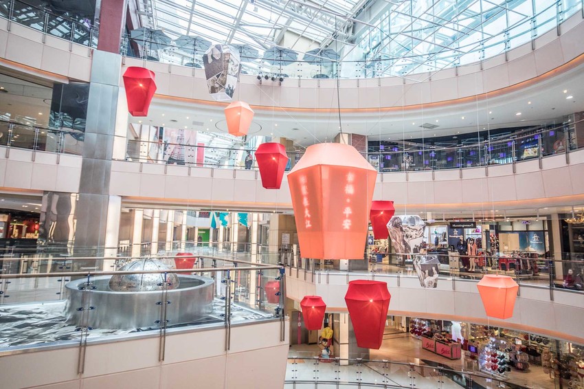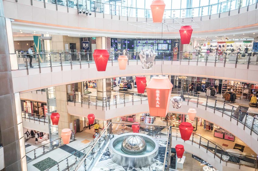 大江購物中心的商場坪數超過兩萬坪,共有地上5層、地下2層,在北台灣算是數一數二的超大型商城,數百家各式名牌潮牌美食店鋪,大江購物中心是屬於長條形的建築,在左右兩邊都有上下的電扶梯,商店圍繞著中央天井,逛街動線十分流暢,正逢農曆年,大江購物中心也換上新的賀歲慶裝置藝術,天景佈置了超壯觀的天燈裝置藝術