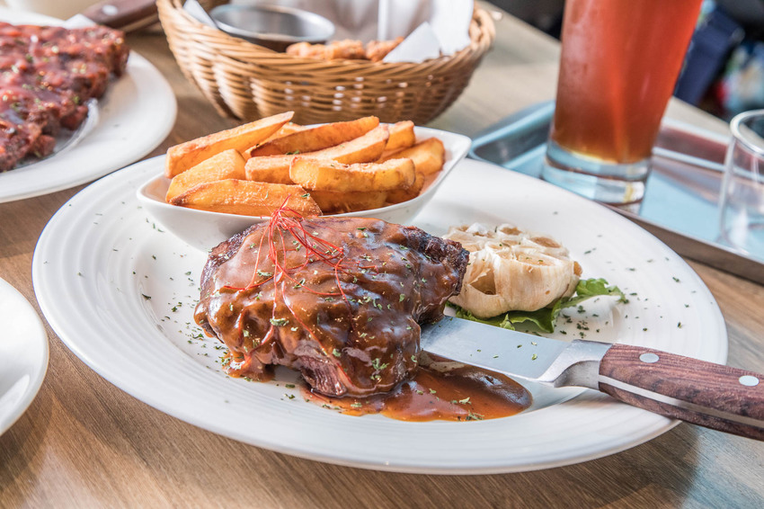 只能用巨大來形容!除了紐澳牛肉排外,還加了德式香腸跟培根,肉的香氣超濃郁,加上酸甜多汁的鳳梨,口感豐富有層次,而且份量重量級,飽足感十足