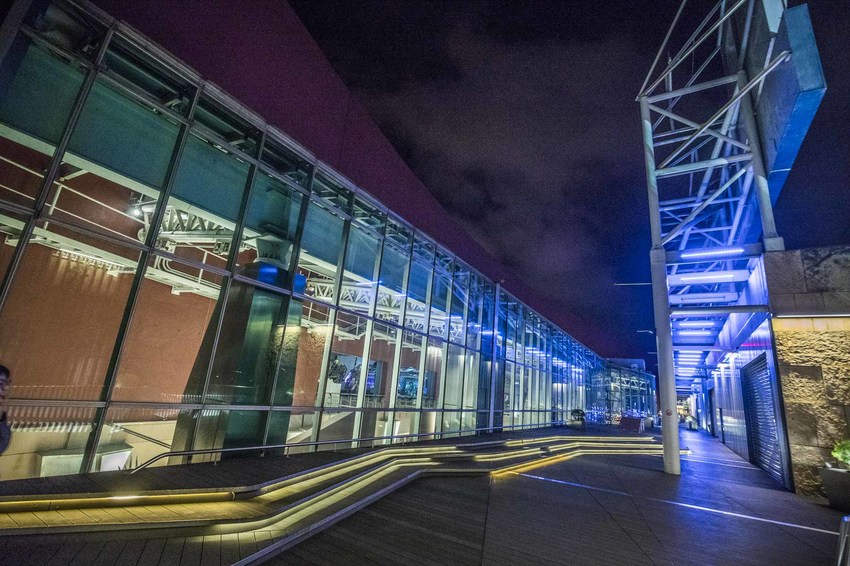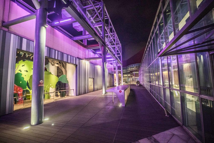 在日本街的後方還有一個必拍的景點:SEGA品牌主題樂園光廊橋,再進入SEGA品牌主題樂園會先經過這條光廊橋,使用LED鋪設而成,透過不同燈光節奏的閃耀,營造出別具風格的絢麗科技感,當然也是網美們不能錯過的拍照好地方