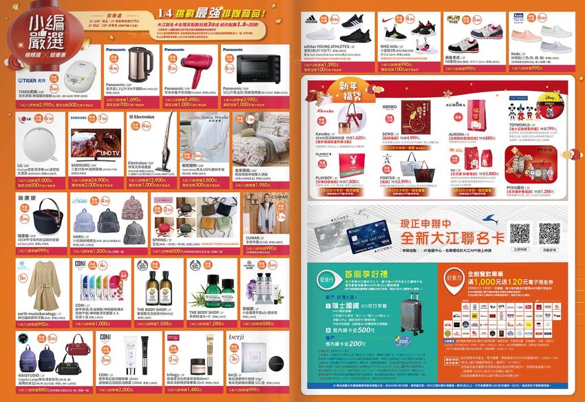 咬咬先上官網幫大家看了一下優惠活動,來大江購物最好先成為中壢大江購物中心會員,因為會員才有獨享的現金回饋喔!另外辦大江聯名卡可以讓你優惠再優惠,折扣再折扣!->完整大江賀歲慶優惠