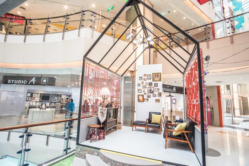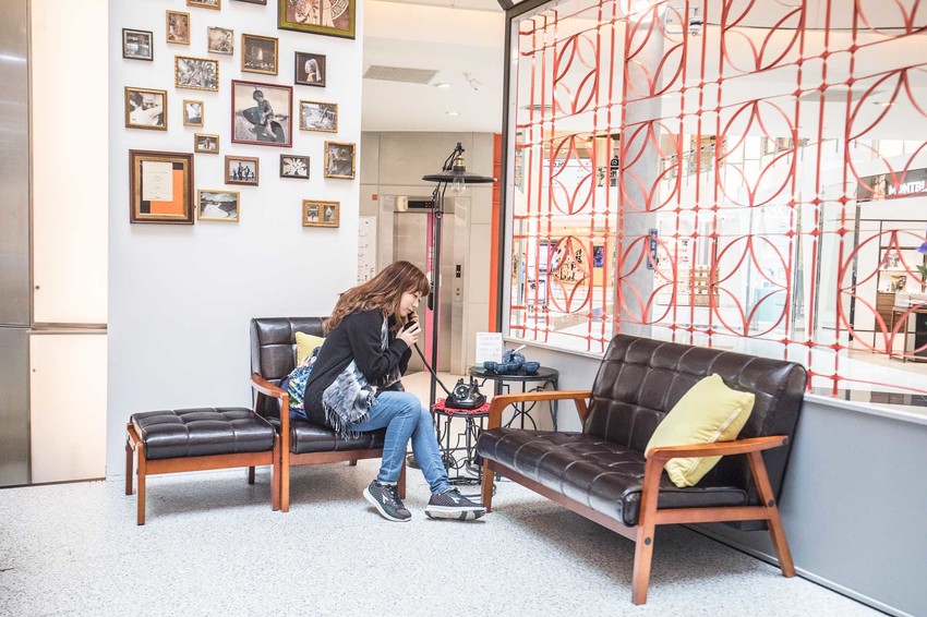 在中廳內還打造了一間超懷舊的客廳,擺放了許多充滿古早味的老物件,像是電話、超古老的拉門電視、電話,根本謀殺底片嘛!而且在這客廳中還藏了大江購物中心的秘密唷!