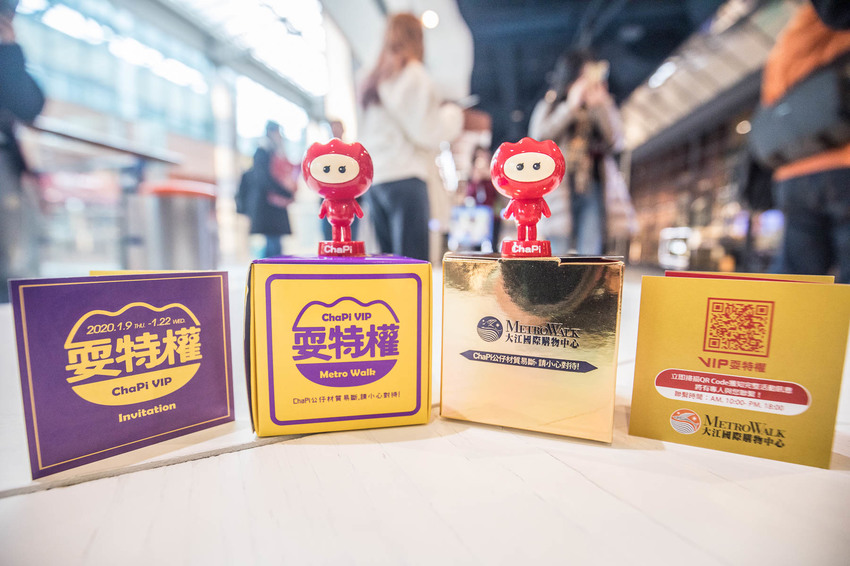 此外還有大江賀歲耍特權BOX送你「大江VIP紀念ChaPi玩偶」活動,只要年度消費滿14萬元以上和50萬元以上的消費者,寄送不同的特權BOX,金色是給前50名年度消費達50萬元以上的VVIP,黃色是給前950名年度消費達到14萬以上的消費者,每個盒子裡都有ChaPi玩偶,玩偶背面都刻有VIP的專屬序號,在1月9日-1月22日活動期間持ChaPi玩偶公仔或說明小卡至大江購物中心都可享獨家特權優惠