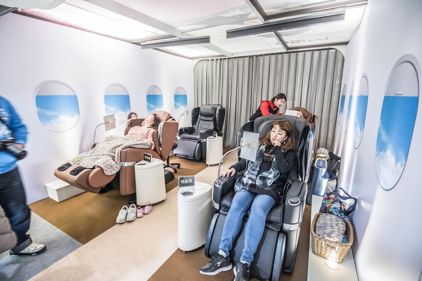 其實這是在GB室內水池廣場OSIM的特賣會啦,現場不僅展示了不少OSIM的頂級按摩椅,並且開放民眾體驗,將體驗區打造成像飛機的頭等艙一樣,超酷!