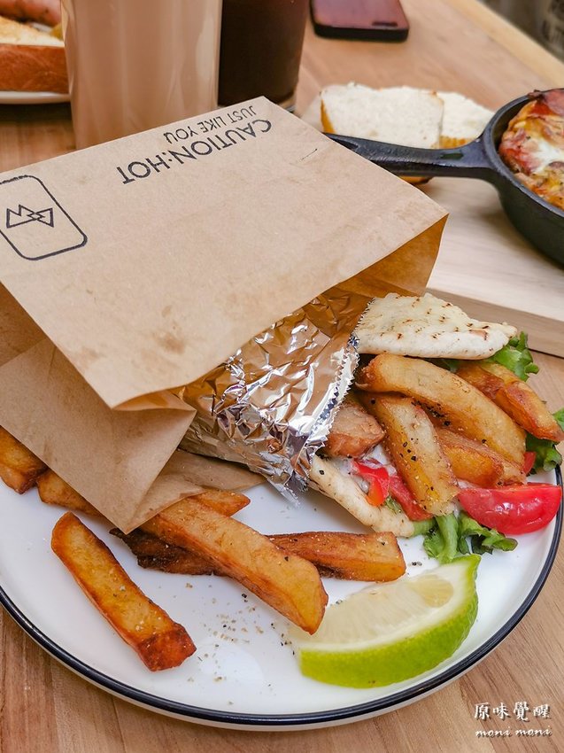 裡面包裹著德式香腸和薯條,可是肉不多,主要是白色義式醬料蠻搶味,很搭。