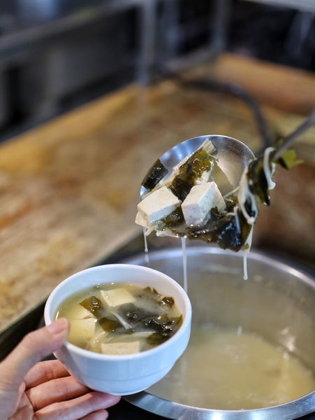內用同樣有湯品跟沙拉吃到飽,味噌湯裡有板豆腐、金針菇、海帶,毫不馬虎,料多到你不敢相信這是免費供應啊!