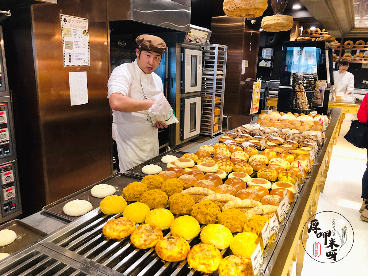 展示空間不算大,因為有超過二分之一的空間是製作區及烘焙器具,在製作區的烘焙師也不少,更可以看出這樣一間出身日本品牌對商品品質的堅持,一般麵包店如果是這樣的人力配置,應該會經營的蠻辛苦。