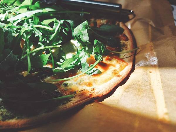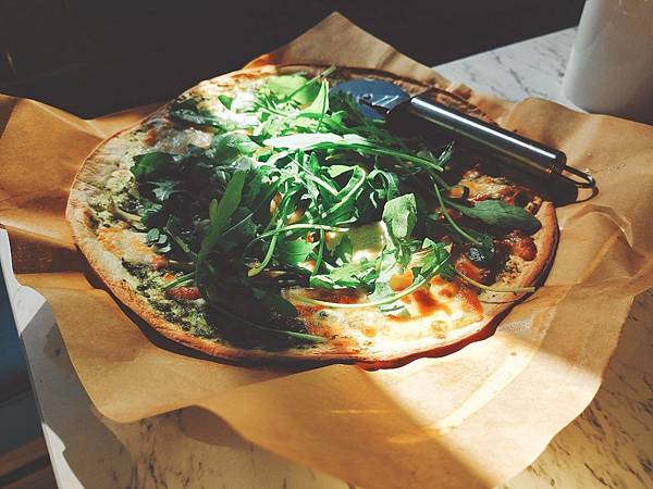 「 青醬蘑菇芝麻葉烤餅 」全貌照~