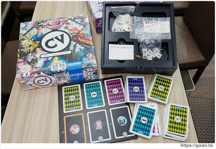 我們裡面玩桌遊資歷最深的娜寶推薦這款CV人生履歷,顧名思義就是一款人生遊戲,娜寶說是一直翻牌和骰骰子的遊戲(笑~) 其實還蠻有趣的,但還是要真正玩過一輪才會比較知道該怎麼玩!這款是今天花我們最久時間的遊戲,但下次還想再玩玩看