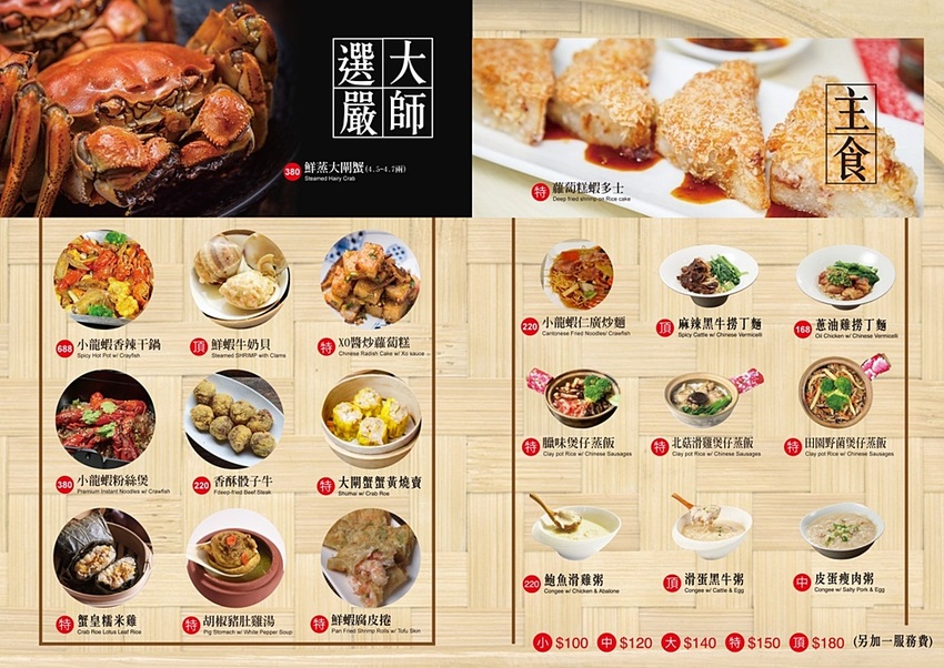 港式點心價格分為小100元、中120元、大140元、特150元、頂180元等