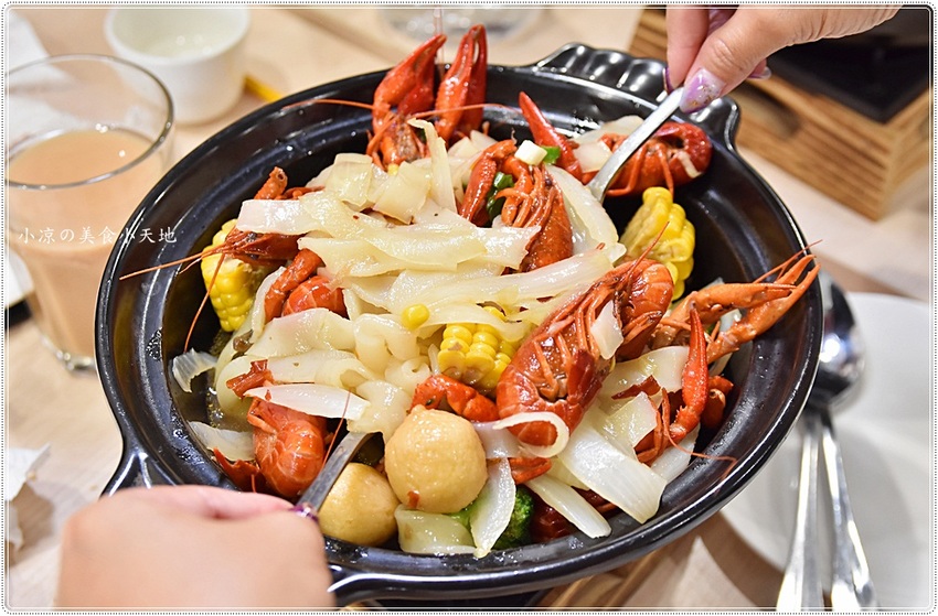 小龍蝦在鍋中烹煮後,把微香辣的味道鎖在蝦肉中,蝦肉Q彈爽口,肉質很是飽滿