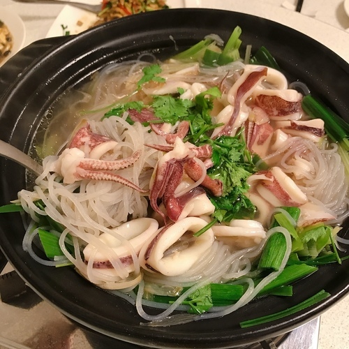 能免費加湯無限次,粗米粉配上透抽,很像放大版的台南小捲米粉小吃