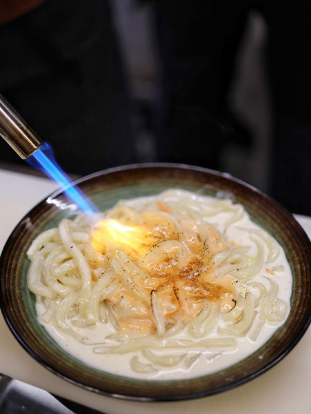 門口巨大的紅色暖簾寫著最暢銷的經典菜色『明太子烏龍麵』,讓人忍不住就想先在這拍上幾張照片。