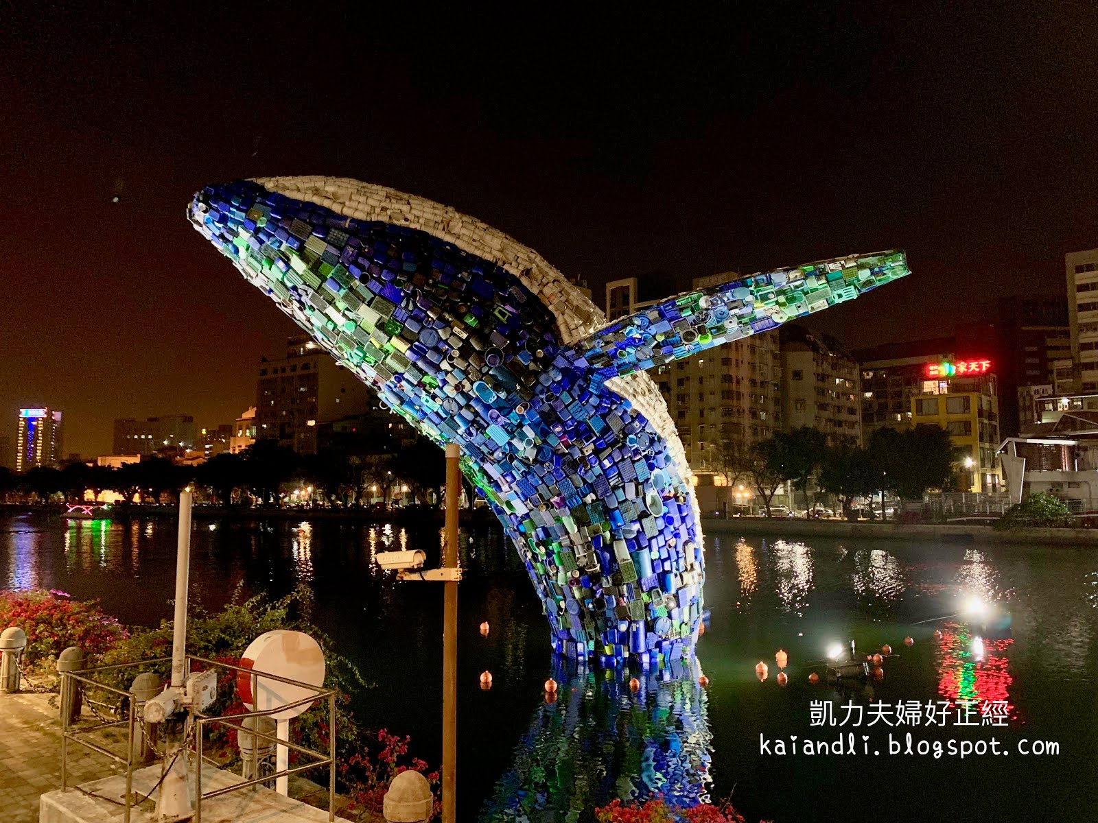 這角度拍起來,愛之鯨特別萌。看似想擁抱藍天,亦或是想要悠遊於愛河上呢