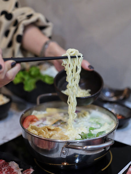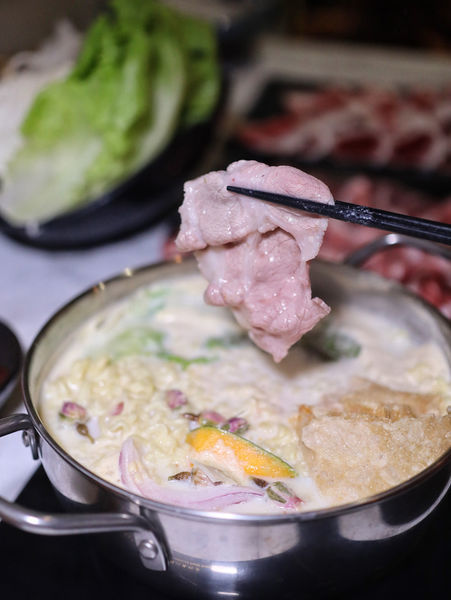 ▫️網美等級的牛奶鍋當然要加玫瑰囉,粉色乾燥玫瑰花苞在白湯上載浮載沉太美了。湯頭是進口鮮奶加入高湯,鹹甜鹹甜的,吃到後面也不會覺得膩口。