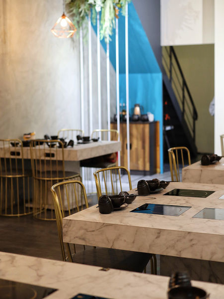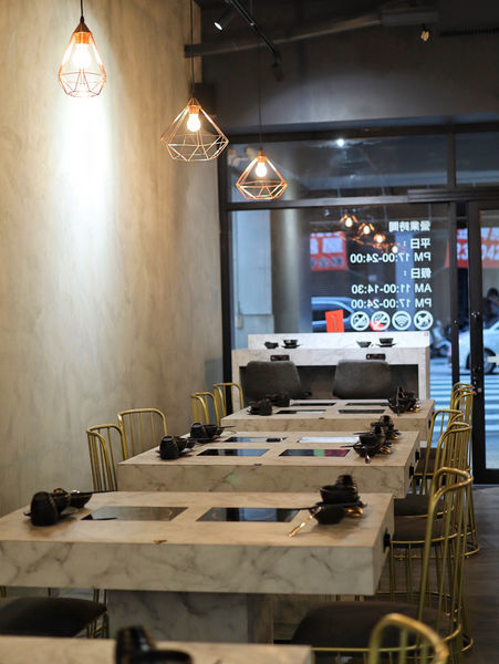 裝潢設置不少適合拍照打卡的元素,像是大理石桌、金邊椅、造型燈等