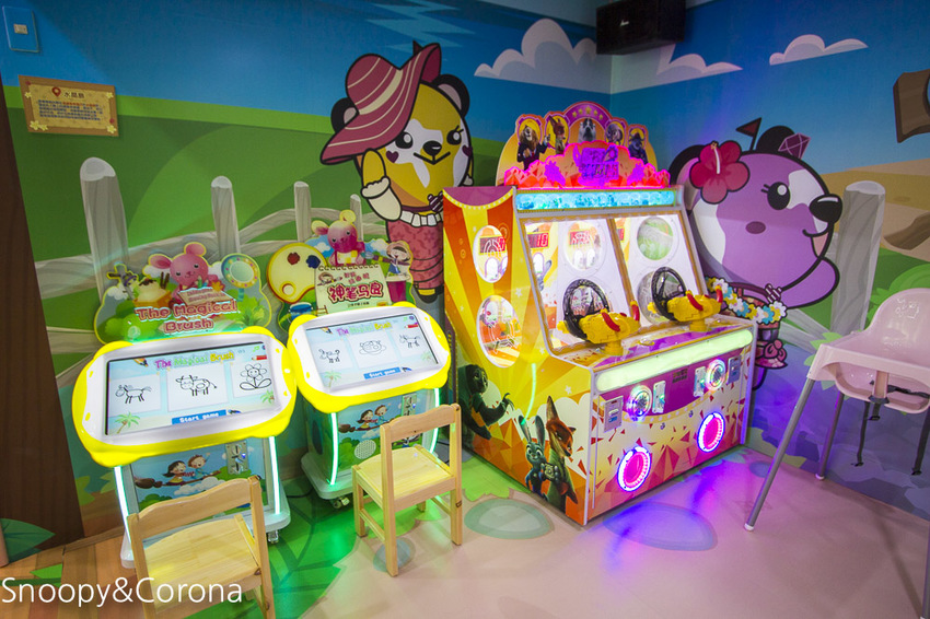 電玩小孩實在太吸引小孩了,可樂娜把入場送的代幣全部奉獻在這裡了。