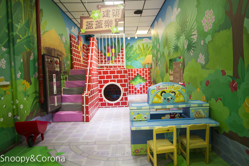 專為小寶寶設計的遊戲區,有攀爬小屋、幼兒益智玩具,