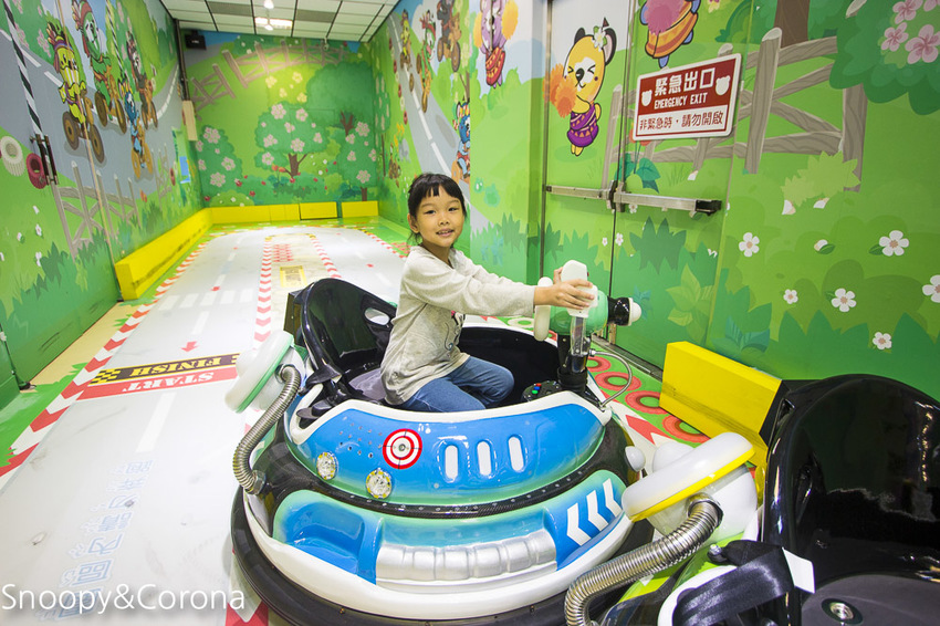 碰碰車需要代幣一枚,坐上碰碰車繫上安全帶相互對撞好刺激。